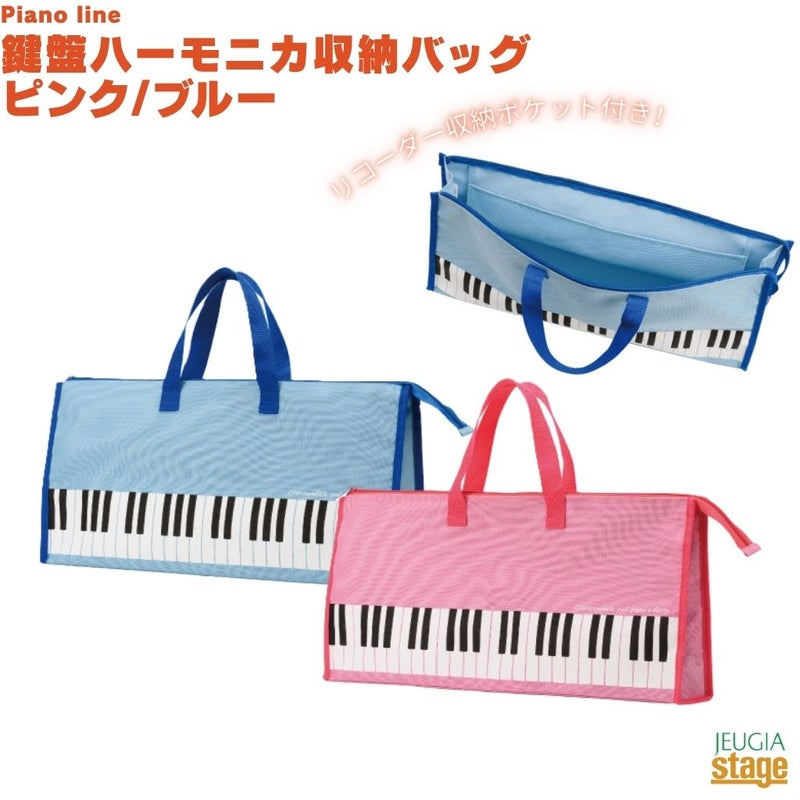 ピアノの鍵盤デザインが特徴的な、「鍵盤ハーモニカ」収納用のバッグ Piano line 鍵盤ハーモニカ収納バッグ ピンク/ブルー