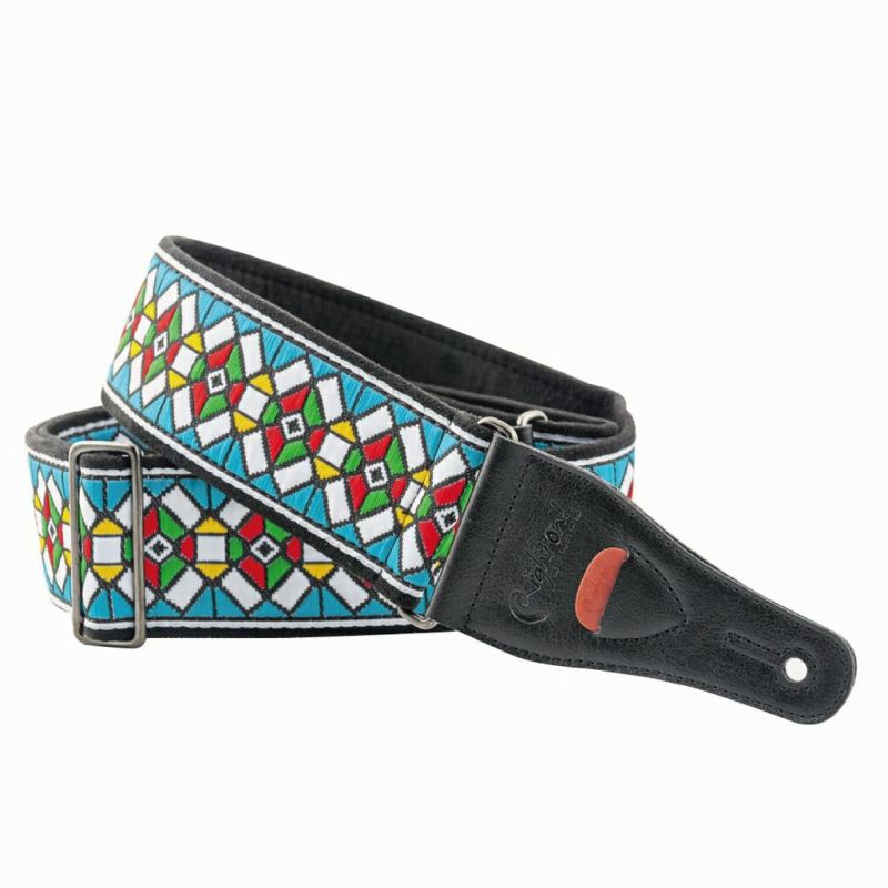 60年代から70年代にかけて、ジミ・ヘンドリックス、ボブ・ディラン、ジミー・ペイジ、ジョン・レノン、エリック・クラプトン、エルビス・プレスリーなど、多くのアイコニックなアーティストが使用していた、ステンドグラス・ストラップとも呼ばれるオリジナル・ストラップのデザインを再現しています。