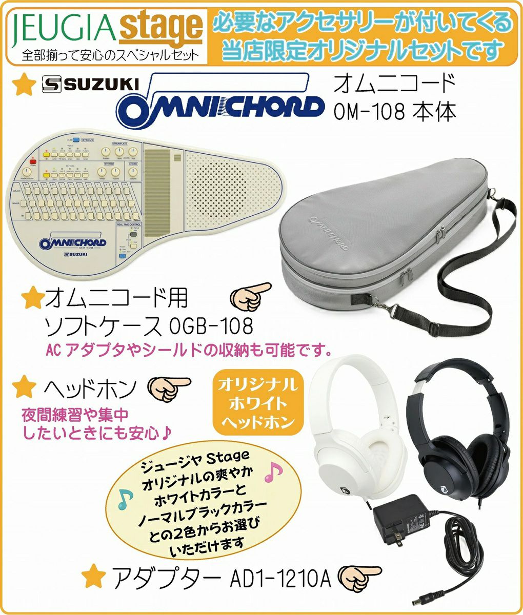 他の画像を見る ライトに弾ける。ディープに遊べる大人気オムニコードOM-108に必要なアクセサリーが付いて合計5点がまとめて揃ったお買い得なセットです! 【次回入荷2026年2月下旬予定:予約承り中】SUZUKI オムニコード OM-108【ソフトケース・アダプター・楽譜集・ヘッドホン付き5点セット】スズキ 電子楽器【Stage-Desk Top Music】【Stage-Synthesizer】ノーマル ホワイト/ベージュ 白 販売価格 ¥ 99,800 税込 詳細を見る お気に入りに登録する