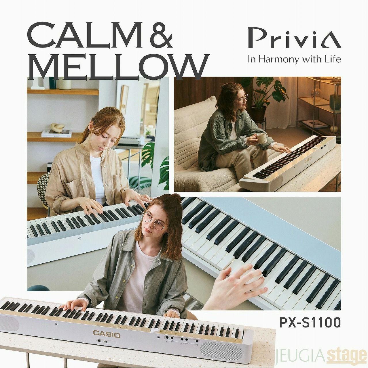 他の画像を見る 大人気スリムボディ電子ピアノの数量限定モデル「メローベージュ」を本体基調カラーホワイトのアクセサリーで揃えたお得なセットにしました 【※取り寄せ品になります】【7月31日発売:入荷次第発送】CASIO Privia PX-S1100MB (MELLOW BEIGE)【ヘッドホン(白)付き】カシオ プリヴィア メローベージュ / ホワイト デジタルピアノ 電子ピアノ【Stage-Piano SET】おすすめ 人気 定番 肌色 茶 白 販売価格 ¥ 72,000 税込 カートに入れる お気に入りに登録する