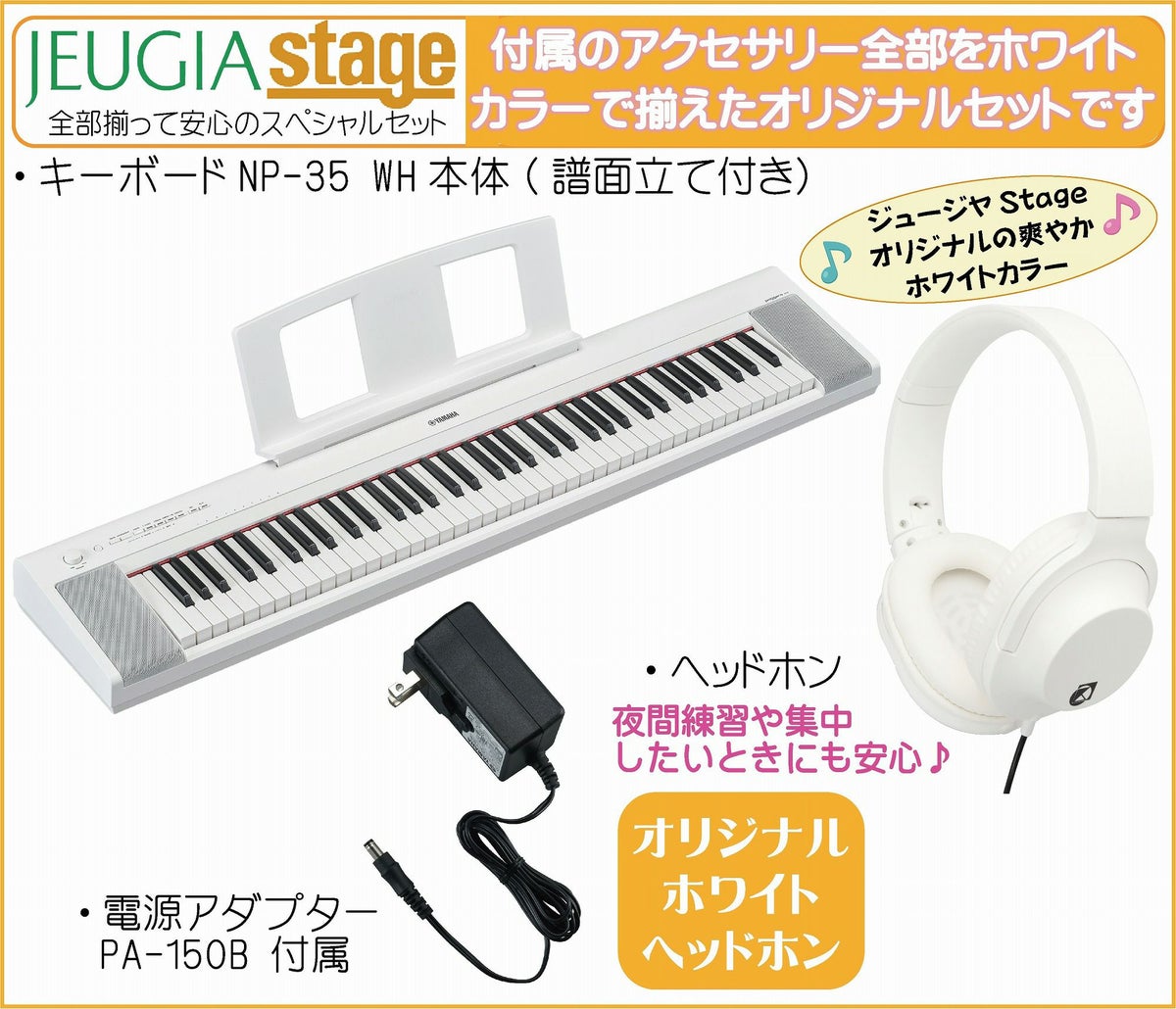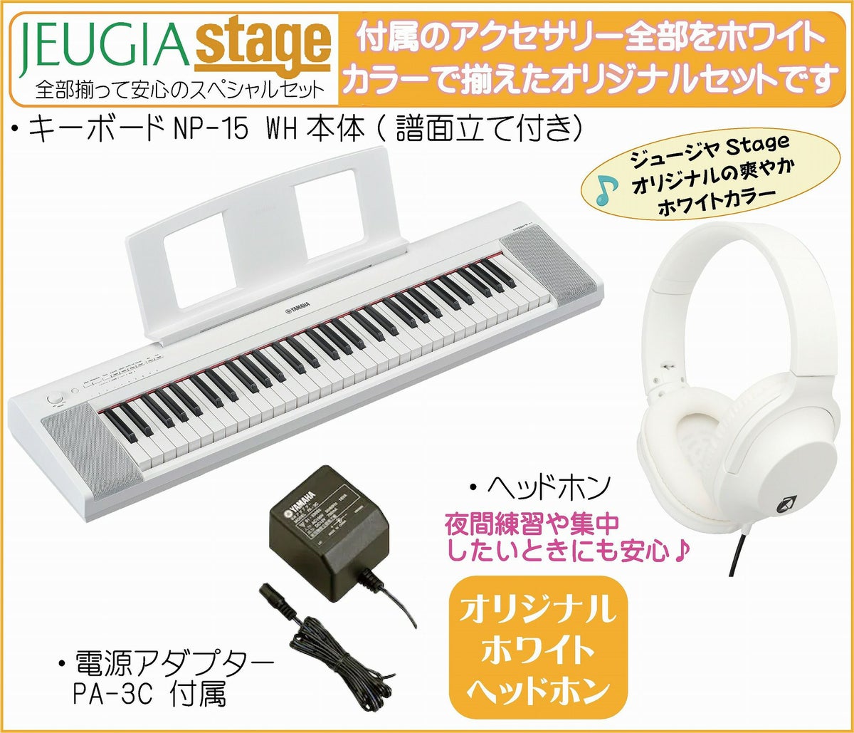 他の画像を見る 軽量コンパクトで美しいピアノ音と自然なタッチの鍵盤を搭載したキーボードにお色合わせした白いアクセサリーをセットにしてご用意しました YAMAHA piaggero NP-15WH 【スタンド(白)・ヘッドホン(白)付】 ヤマハ ピアジェーロ キーボード ホワイト 61鍵盤※こちらの商品はお取り寄せとなります。メーカー在庫確認後ご連絡します。 販売価格 ¥ 31,570 税込 カートに入れる お気に入りに登録する