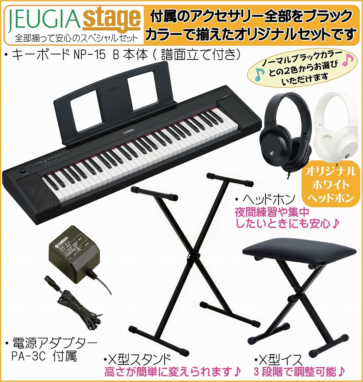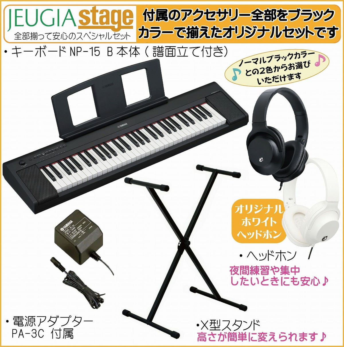 他の画像を見る 軽量コンパクトで美しいピアノ音と自然なタッチの鍵盤を搭載したキーボードにお色合わせした黒のアクセサリーをセットにしてご用意しました YAMAHA piaggero NP-15B 【スタンド(黒)・イス(黒)・ヘッドホン(黒)付】 ヤマハ ピアジェーロ キーボード ブラック 61鍵盤※こちらの商品はお取り寄せとなります。メーカー在庫確認後ご連絡します。 販売価格 ¥ 35,200 税込 カートに入れる お気に入りに登録する