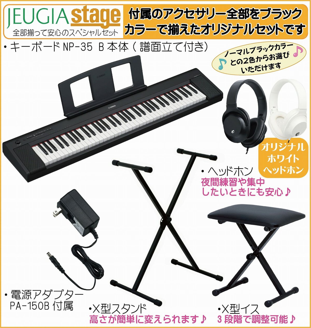 他の画像を見る 軽量コンパクトで美しいピアノ音と自然なタッチの76鍵盤キーボードにお色合わせした黒のアクセサリーをセットにしてご用意しました YAMAHA piaggero NP-35B 【ヘッドホン(黒)付】 ヤマハ ピアジェーロ キーボード ブラック 76鍵盤 販売価格 ¥ 39,380 税込 カートに入れる お気に入りに登録する