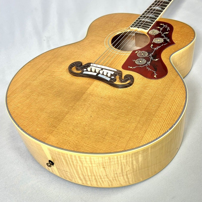 ギブソンSJ-200™は1937年に初登場し、そのサイズ、卓越した広がりのあるサウンド、ステージでの圧倒的な存在感により、瞬く間に「キング・オブ・フラットトップ」と称されるようになりました。1947年には、サイドとバックに使用される木材がローズウッドからメイプルに変更されました。SJ-200はハリウッドのカウボーイからフォークアーティスト、カントリー界のスーパースターからロック界の重鎮まで、あらゆる音楽家に愛用され、ヴィンテージSJ-200モデルはコレクター垂涎のモデルとなっています。