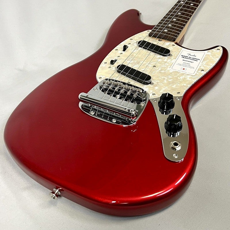Made in Japan Traditional 70s Mustang®はグロスフィニッシュのバスウッドボディを採用。22本のヴィンテージスタイルフレットを装備した9.5インチラジアスの”U” シェイプメイプルネックがTraditionalシリーズならではのクラシカルな演奏製を提供します。ダイナミックヴィブラートテイルピース付きのフローティングブリッジ、そしてTraditionalシリーズのために選定されたオリジナルピックアップはリアルで音楽的なヴィンテージトーンを奏でます。堅実なギタークラフトマンシップと、プレイヤーのニーズに柔軟に対応する答えが、本シリーズに反映されています。
