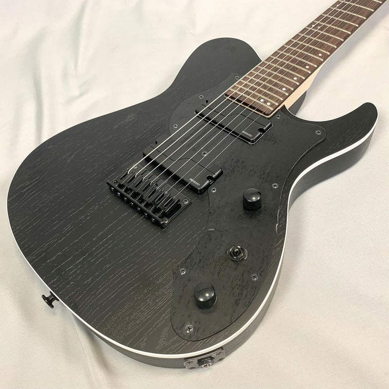 当モデルは、アッシュボディ、ローズウッド指板、オープンポアブラックカラーという組み合わせの7弦ギター。