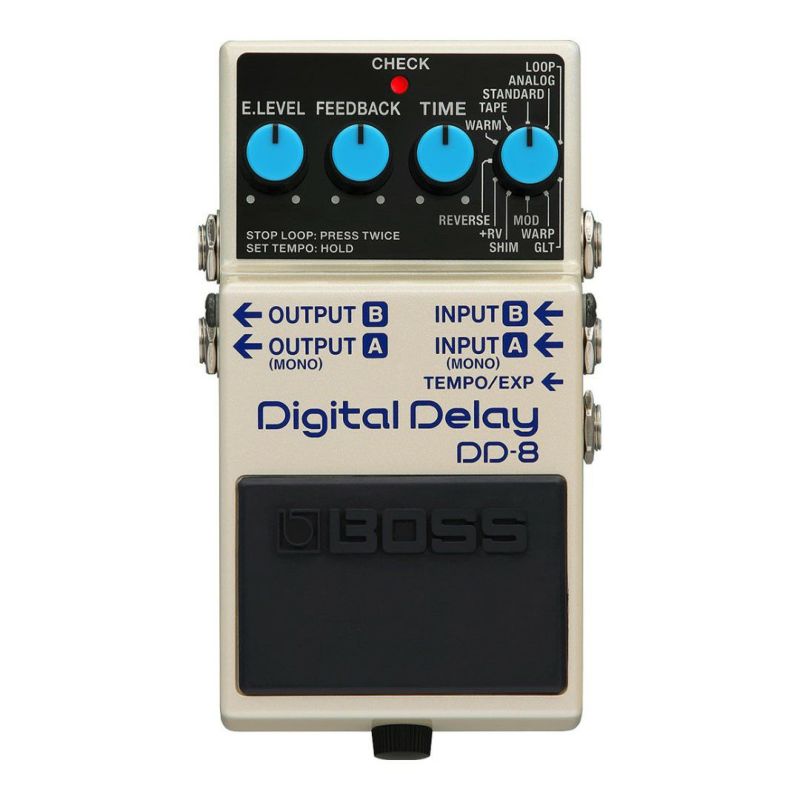 DD-8 Digital Delayは、BOSSコンパクト・ディレイ・ペダル史上最もワイドレンジで多機能なディレイ・ペダルです。多彩なサウンド、柔軟なディレイ・タイム、豊富なコントロール・オプションと接続端子など、あらゆる面で優れたスペックを誇ります。また、モノ/ステレオの入出力に対応し、様々な接続が可能です。11種類のディレイ・モードは、幅広い音楽ジャンルに馴染むベーシックなサウンドから、プレーヤーの想像を掻き立てる個性的なサウンドまで、多彩な音色を搭載。さらに、オーバーダブと外部コントローラーに対応したルーパーも備えています。DD-8は、最小限のスペースで最大限のパフォーマンスを実現する、コンパクト・ディレイ・ペダルの理想形です。