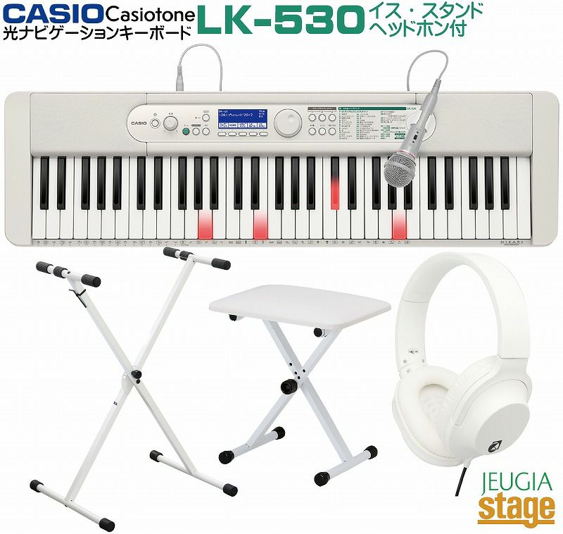 LK-530キーボード本体にお色合わせしたホワイトカラーのX型イス・X型スタンド・ヘッドホンまで揃って付いたお買い得なセット!!