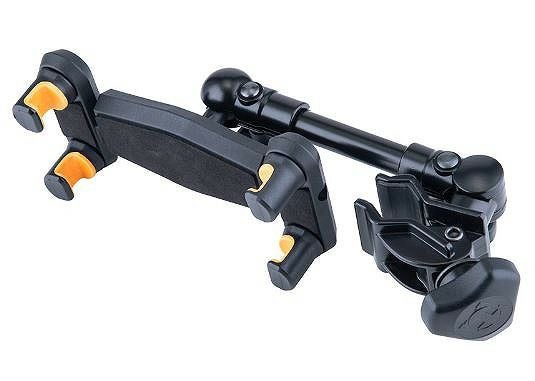 一般的なマイクスタンドや譜面台、キーボードスタンドなど、丸管/角管を問わず、自由な角度で取付可能。