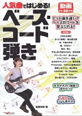 ヒット曲を通じてベースのコードを覚えられる!文字が大きい譜面で見やすい!540ものコード表付き!