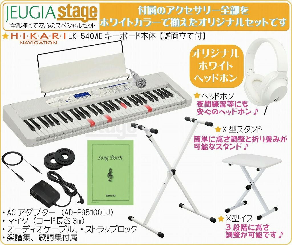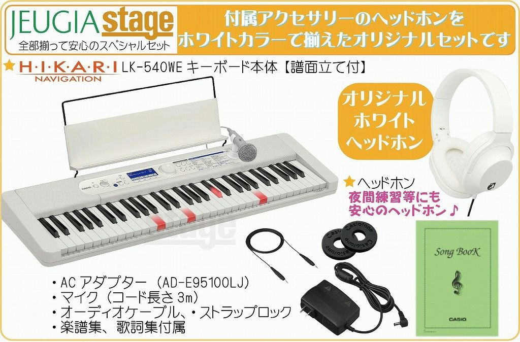 他の画像を見る ♪ホワイトカラーのキーボード本体に白でお色合わせしたヘッドホンが付いたお洒落でお得なセットです♪ 【新製品】CASIO LK-540WE Casiotone【ヘッドホン(白) 付】カシオ 光ナビゲーション キーボード カシオトーン ホワイト 61鍵【Stage-Keyboard SET】LK-530後継機種 白 脳トレ 脳活性化 販売価格 ¥ 38,500 税込 カートに入れる お気に入りに登録する