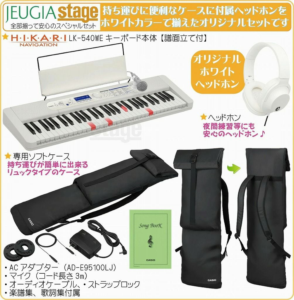 他の画像を見る ♪ホワイトカラーのキーボード本体に白でお色合わせしたスタンド・ヘッドホンが付いたお洒落でお得なセットです♪ 【新製品】CASIO LK-540WE Casiotone【スタンド(白)・ヘッドホン(白) 付】カシオ 光ナビゲーション キーボード カシオトーン ホワイト 61鍵【Stage-Keyboard SET】LK-530後継機種 白 脳トレ 脳活性化 販売価格 ¥ 41,800 税込 カートに入れる お気に入りに登録する