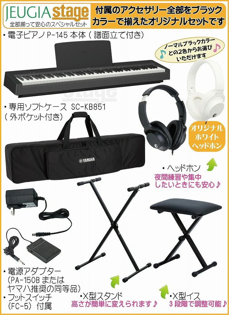 他の画像を見る ♪本格的なピアノ演奏をどこでも気軽に楽しめる、コンパクトでシンプルな電子ピアノに必要なアクセサリーをセットにしてご用意しました♪ 【期間限定特価】YAMAHA P-145B【専用ソフトケース SC-KB851・スタンド(黒)・イス(黒)・ヘッドホン(黒)付き】ヤマハ 電子ピアノ Pシリーズ 88鍵 ブラック 【Stage-Piano SET】P-45後継機種 やまは おすすめ ぴあの 人気 黒 販売価格 ¥ 64,900 税込 詳細を見る お気に入りに登録する