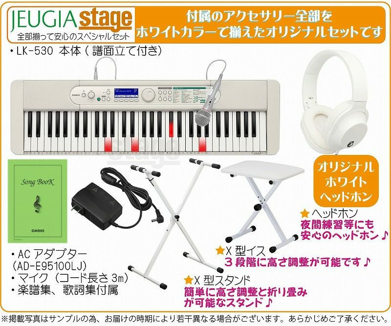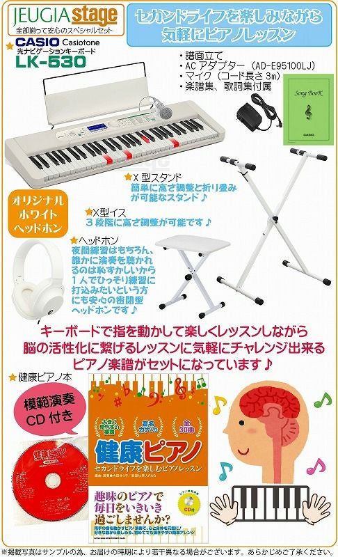 他の画像を見る 「カシオキーボード」で「脳」が活性化!楽しみながらレッスンできる健康ピアノ本と白でお色合わせしたアクセサリー付のお得なセットです 【数量限定特価】CASIO LK-530 Casiotone【健康ピアノ本・イス(白)・スタンド(白)・ヘッドホン(白) 付】カシオ 光ナビゲーション キー※こちらの商品はお取り寄せとなります。在庫確認後ご連絡します。 販売価格 ¥ 45,100 税込 カートに入れる お気に入りに登録する
