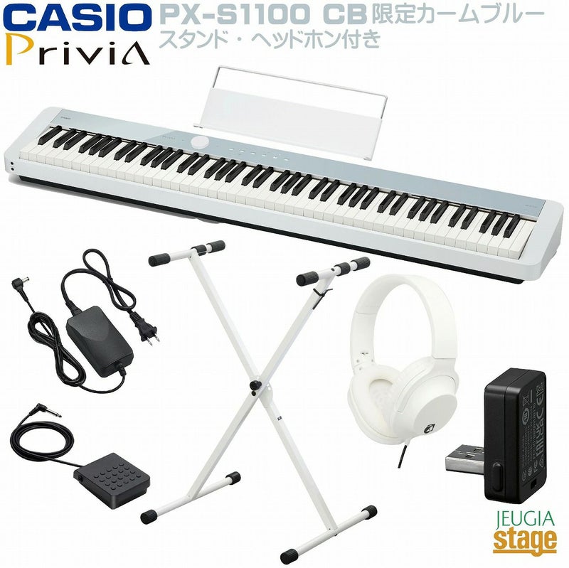 ♪大人気スリムボディ電子ピアノに登場した数量限定新モデル「カームブルー」の本体基調カラーであるホワイトに、お色合わせしたオールホワイトカラーのアクセサリー「X型スタンド・ヘッドホン」が全部揃って付いた可愛くお洒落なお買い得セットです♪
