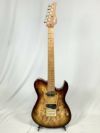 当モデルは、スポルテッドメイプルトップ・アッシュバックボディ、ローステッドメイプル指板、ほうじ茶バーストカラーという組み合わせ。初のローステッドメイプルネック採用となります。