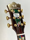 華やかなグレープのインレイと、随所に施された “グレープ”デビュー50周年を祝うロゴが映えるオリジナル・ジャンボ・サイズのPTJ。上質な木材を使用し、国内の職人が丹念に組み込んだ特別なモデル。