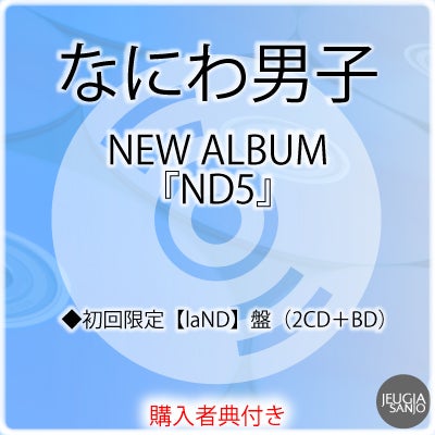 他の画像を見る 「Naniwa Danshi」の5乗をタイトルに掲げた、煌めき溢れるニューアルバム。たくさんの愛と幸せを届ける5周年イヤーのセレブレーション開幕と共にお贈りします。 【予約】2026.6.17発売なにわ男子 NEW ALBUM『ND5』<初回限定【ND】盤(CD+Blu-ray)>※購入者特典:ND5スペシャルチェキセット~なにわ男子と過ごすweekeND~付き![三条本店] 販売価格 ¥ 4,180 税込 販売期間 〜 2026/06/15 23:59 詳細を見る お気に入りに登録する