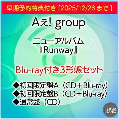 他の画像を見る 新たに走り出したAぇ! groupのセカンドアルバム『Runway』がここに完成! 【予約】2026.2.25発売Aぇ! group『Runway』Blu-ray付き3形態セット初回限定盤A(CD+Blu-ray)+初回限定盤B(CD+Blu-ray)+通常盤(CD)※早期予約特典:フレークステッカーセット(メンバーソロ4種)付き![三条本店] 販売価格 ¥ 12,100 税込 販売を終了しました。 詳細を見る お気に入りに登録する