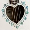 2サウンドに広がりを与えるハート形状のサウンドホールと、ハートとドットが交互にちりばめられたアバロン柄のロゼッタ