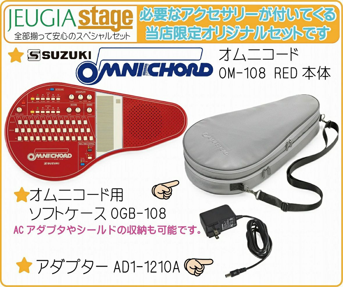 他の画像を見る 「鈴木楽器製作所創業70周年」記念OM-108の数量限定カラーモデルに必要なアクセサリー付きで合計4点がまとめて揃ったお買い得セットです! 【ご予約承り中:1月21日発売】SUZUKI オムニコード OM-108 RED【ソフトケース・アダプター・ヘッドホン付き4点セット】スズキ 数量限定 リミテッドカラー レッド 電子楽器【Stage-Desk Top Music】【Stage-Synthesizer】赤 限定色 予約商品 こちらは予約商品です 予約販売価格 ¥ 102,300 税込 カートに入れる お気に入りに登録する